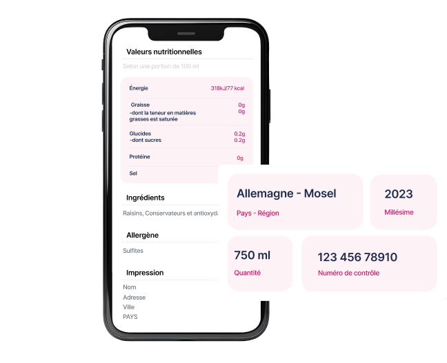 Offer your customers an immersive experience by revealing all the secrets of your wines with a simple scan of a QR Code. Your vintages come to life, and your customers are transported to the heart of your estate.